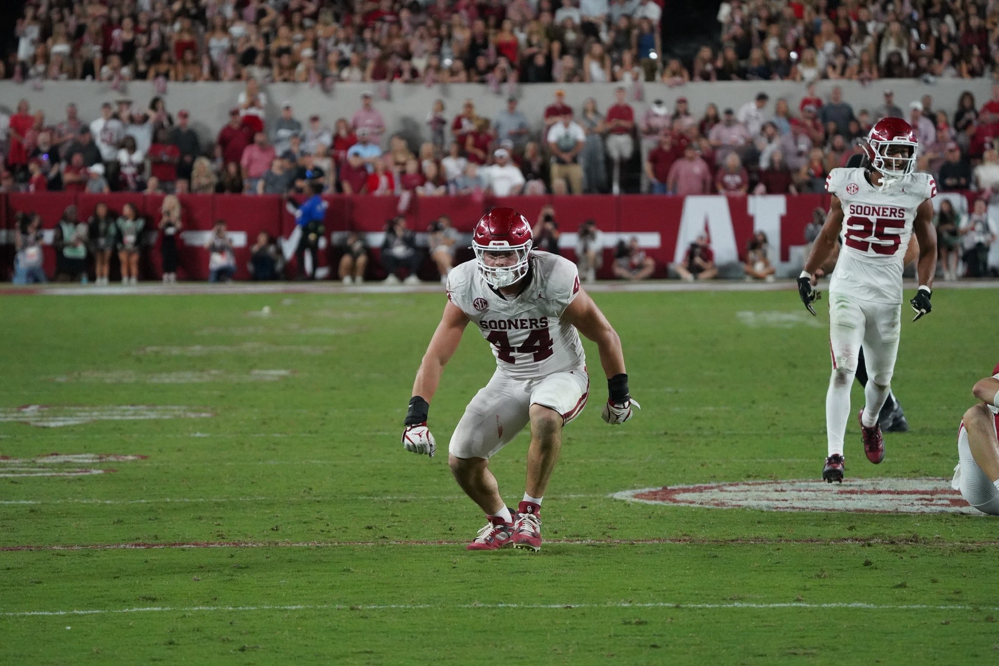 Earlier, near the end of the 3rd quarter, the Sooners grabbed the opportunity to take the lead, recovering a Ty Simpson fumble forced by the pass rush of Taylor Wein. A pass interference call against Alabama put the Sooners at the ‘Bama 10 yard line.