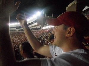 This was a night of emotion and gut-instinct and Landry Jones stepping up in the clutch on a third and 12, with the game tied and momentum entirely shifted in favor of the screaming Seminole fans who hadn’t seen Doak Campbell this loud in a generation (a record 84,392 attended — but 12,000 of them wore crimson). And Jones hitting star receiver Ryan Broyles on a 23-yard post route for a first down to keep the Sooners drive alive.