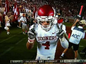 And, then, right after, to lob a 37 yard touchdown pass to Kenny Stills — a youngster likely the same age as that coed — who knew very much what a Sooner is as he wrestled Landry’s pass away from Florida State’s Greg Reid in the end zone to show it. The Sooners had wrestled back control of the game and a 20-13 lead with precious time running out.