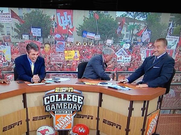 “Earlier today on college gameday while picking the smu-houston game I got a bit excited and used an expletive that I shouldn’t have used. I apologize and can promise it won’t happen again.”